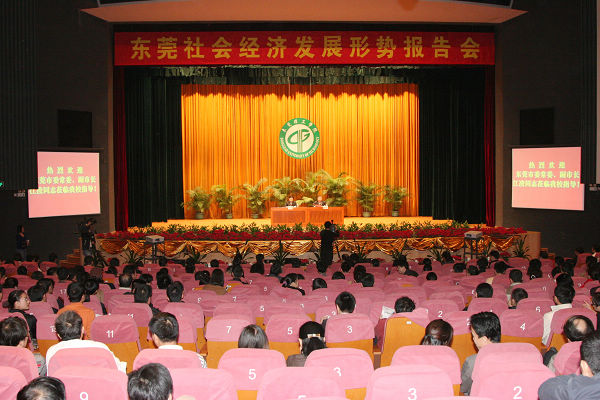 江凌副市长报告的主题是“金融危机对东莞产生的影响及应对”,他运用了大量生动的事例指出金融危机虽然对东莞造成了一定的影响,但并没伤到东莞经济的根基,甚至有部分骨干企业逆市而上,而东莞也及早采取了措施帮助企业应对危机,并取得了一定的效果,增强了外商在东莞投资的信心,因此金融危机对转型中的东莞来说既是挑战也是机遇,只要把握好、利用好这个机遇,把危机转化为契机,东莞的未来将更好。他也指出,东莞要实现健康持续发展,应形成“包容精神、世界眼光、创业意识”的文化底蕴。