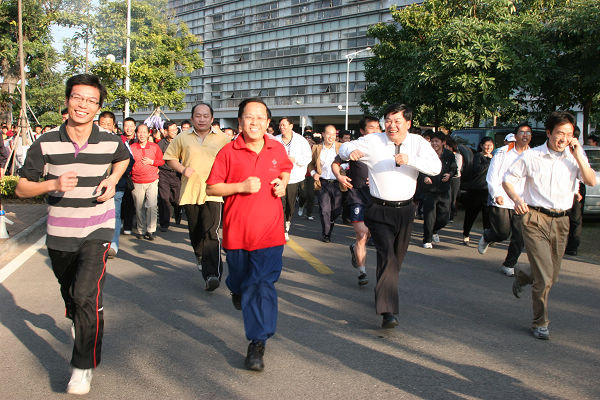 昨日,冬日里的松山湖校园运动氛围尤其浓厚,千余名教职工环校长跑一周,锻炼体魄、展示风采,以此来迎接即将到来的2009年。