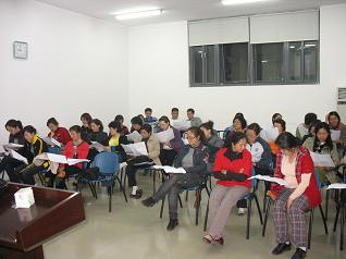 昨晚,工会委员、师范学院汪莹副教授作指导老师对教职工合唱团进行了培训指导。到现场的队员有41人。汪老师对到场的队员进行了分声部的分组,进行练声,并讲了唱歌发声的注意事项,接着对歌曲《送别》进行了分声部试唱。