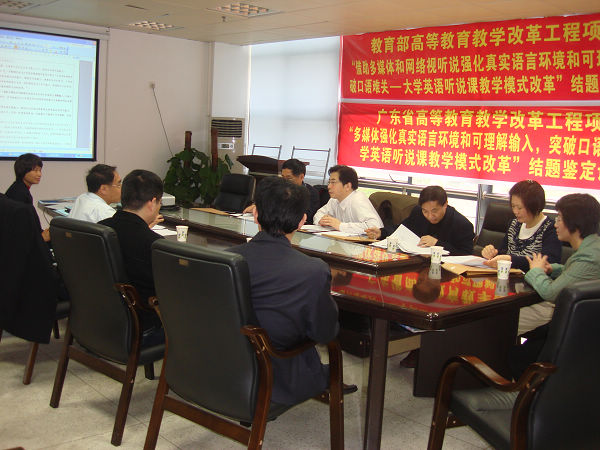 3月5日下午,教务处组织召开“借助多媒体和网络视听说强化真实语言环境和可理解输入,突破口语难关——大学英语听说课教学模式改革”结题验收评审会。这一课题于2006年成功申报广东省高等教育教学改革工程项目和教育部高等教育教学改革工程项目。华南理工大学外语学院院长、国家教学指导委员会委员、广东省大学英语教学指导委员会主任刘洊波,华南农业大学外语学院院长、广东省大学英语教学指导委员会委员何高大,暨南大学外语学院院长、广东省大学英语教学指导委员会委员卢植,九九精品视频一区在线久久久久久久久久毛片精品美女|国产99久久久久久免费看|中文精品99久久国产|国产69精品久久久久9999|精品久久久久久中文字幕无码|亚洲熟妇无码久久精品国产精品99|精品国产天堂综合一区在线外语系主任陈淑芳,九九精品视频一区在线久久久久久久久久毛片精品美女|国产99久久久久久免费看|中文精品99久久国产|国产69精品久久久久9999|精品久久久久久中文字幕无码|亚洲熟妇无码久久精品国产精品99|精品国产天堂综合一区在线外语系教授关孜慧作为评委参加会议,教务处处长阮湘元主持会议。