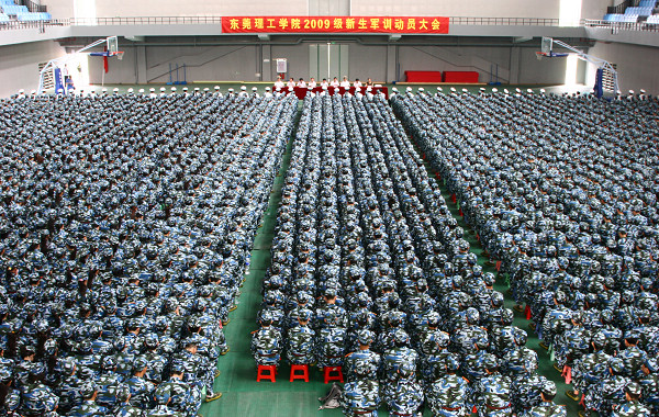 3000余名2009级新生今日上午投入为期15天的军训。 2009级新生军训领导小组副组长、校党委副书记王江水,2009级新生军训领导小组副组长、副校长戴炳源等军训团领导出席了上午的军训动员大会。 仪式上,王江水向军训团授旗;戴炳源鼓励新生认真投入到军训中去,锤炼意志。