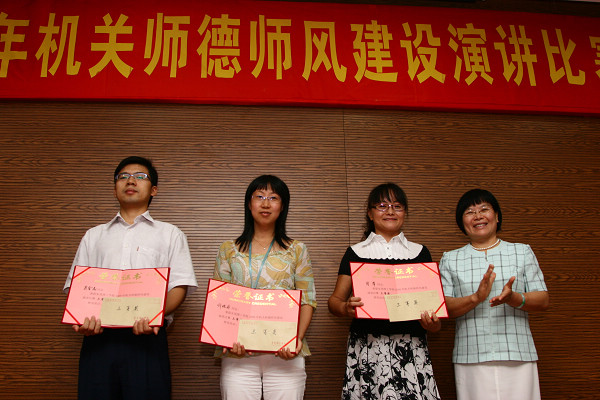 10月28日,机关党总支在学术交流中心举行2009年师德师风演讲比赛。校领导王江水、黄碧莲与全体机关工作人员观看了比赛。