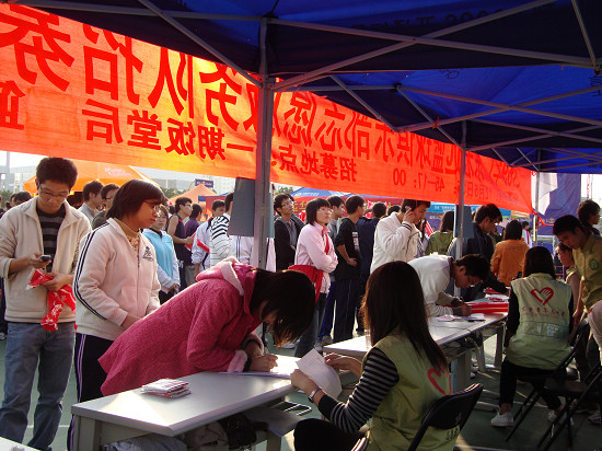 当天下午,我校宏远篮球俱乐部志愿服务队在篮球场开展了2009年的招募活动。活动现场不仅聚集了众多报名参加志愿者的同学们,宏远篮球俱乐部队的王仕鹏、陈江华、隋岩、任俊飞四位球星也来到现场与同学们开展互动游戏,并为去年宏远篮球俱乐部志愿服务队的10名志愿者颁发了优秀志愿者证书。宏远篮球俱乐部志愿服务队自去年11月成立以来,为CBA宏远华南虎篮球队的主场以及宏远篮球俱乐部所举办的球迷活动提供志愿活动,累计超过1600小时,受惠人数约88000人次。该志愿队得到了宏远篮球俱乐部和现场观众的认可和高度评价,今年,宏远篮球俱乐部将与我们学校继续合作,招募更多的志愿者为CBA赛事服务。报名活动当天,共收到340名同学递交报名申请表,校志愿服务中心将以面试的形式择优,最后选拔出50名志愿者。