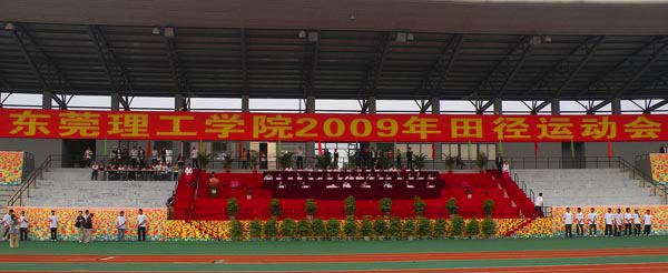 11月27日早上8:30我校2009年田径运动会在体育中心田径运动场隆重开幕,周致纳、杨晓西、王江水、黄碧莲、邹晓平等校领导,教务长林养素以及学校中层干部在主席台就座。