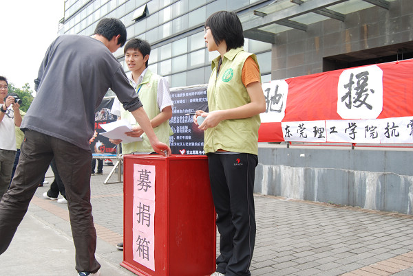 同日,学校团委、志愿服务中心携手各院系团总支、志愿服务站在学校饭堂门口开展“书祁福,献爱心”募捐活动。路过的师生纷纷向捐款箱投下了自己的 一片“爱心”。 不少同学还在“祈福墙”上书写祈福,祝愿青海省玉树县灾区人民早日摆脱困境,过上美好的生活。