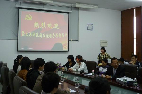 春寒料峭,细雨绵绵。4月15日上午,暨南大学深圳旅游学院党委副书记、纪委书记程斌,旅游管理系副系主任、系总支书记赵新建,心理咨询中心主任王求是等3名教师及近20名学生来我校师范学院参观交流,师范学院院长李玉悌教授及部分领导老师热情接待到访的客人们。
