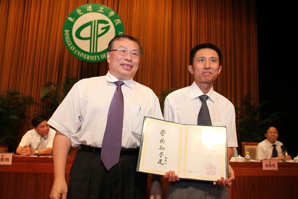在学校领导周致纳、王江水、黄碧莲、安少华、邹晓平、戴炳源,东莞市科技局局长何跃沛,东莞市社科联主席王思煜和600多名教职工的见证下,杨晓西校长向学科带头人颁发聘书,并逐一与他们签订《学科建设目标责任书》。