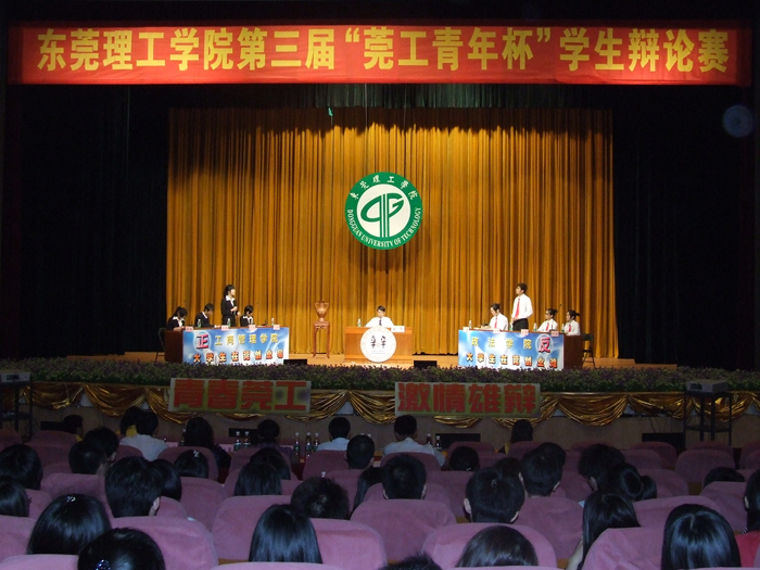 5月9日,第三届“莞工青年杯”学生辩论赛总决赛在大礼堂举行,工商管理学院辩论队险胜政法学院辩论队,捧起“莞工青年杯”。