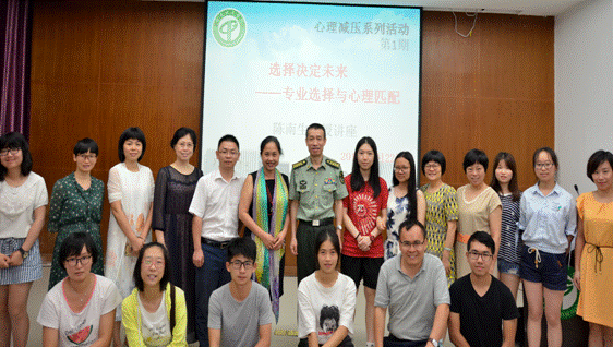 6月22日,教师发展中心联合学生处,举办2017年首场教职工心理减压活动。广东省高校心理健康教育专业委员会常委陈南生教授主讲“选择决定未来——专业选择与心理匹配”,学生处副处长卫红权致开场词。30余位教职工参与此次活动。