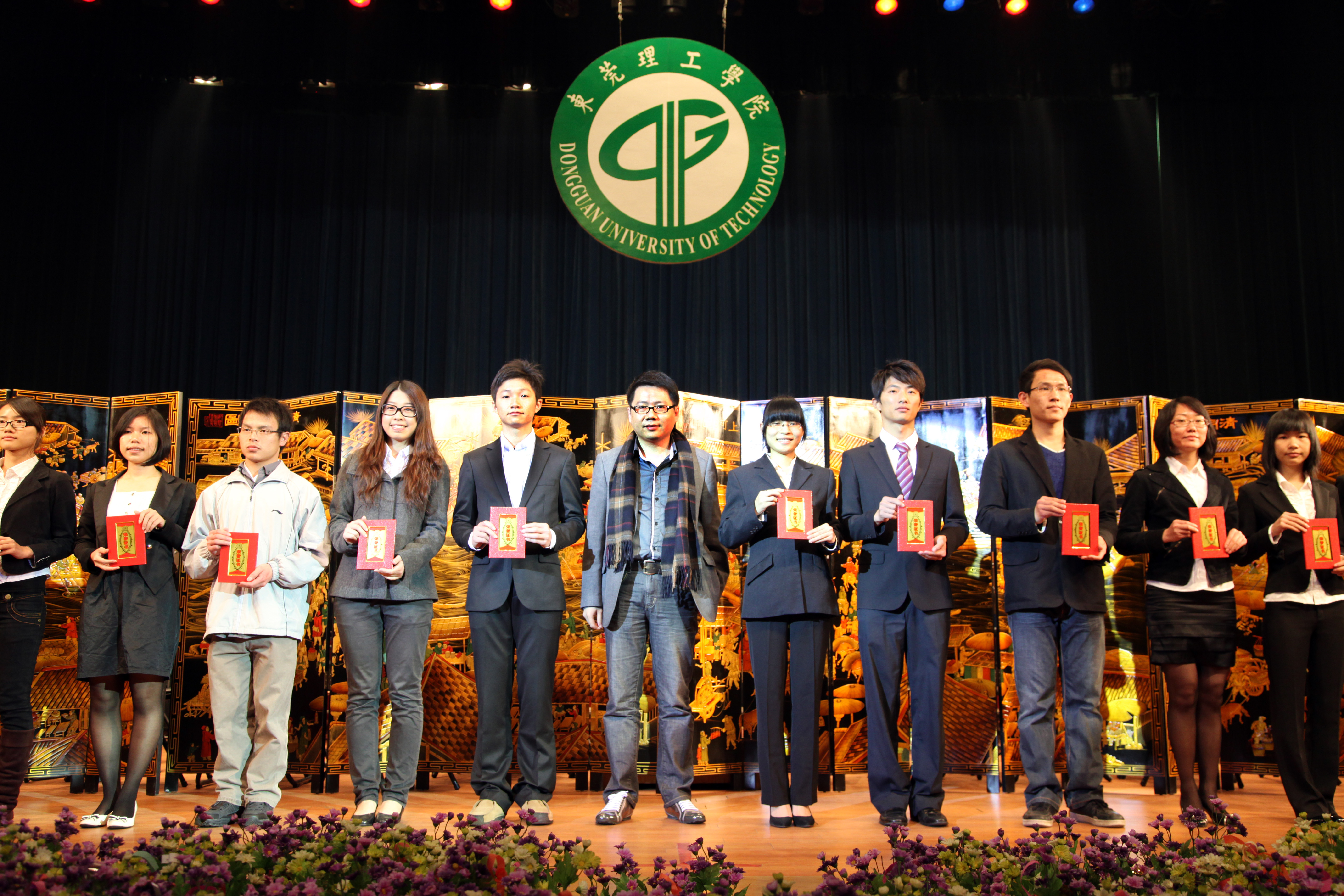 部分“东莞外商协会”奖学金获奖同学与颁奖嘉宾合影留念