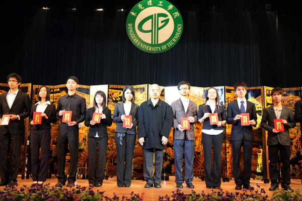近年来,我校办学得到社会各界的大力支持,在当晚的颁奖的各类奖学金中,最引人注目的是“杨振宁奖学金”,本学年度共有6个团队获得该项奖学金,他们都是在全国各种科技竞赛中获得优异成绩的学生团队。另外,还有10家企业分别设立的奖学金,奖金总额达427500元。其中个人获得奖金最高的是由广东光大企业集团、东莞市康华投资集团有限公司、东莞市新世纪房地产开发有限公司分别设立的“光大”奖学金、“康华”奖学金”和“新世纪”奖学金,今年共有48名同学获得,每人奖金是5000元;而“新维思”奖学金、“东穗”奖学金、“驰鹏”奖学金由我校的校友设立,今年共有41人获得,;此外,还有“国基集团”奖学金、“外商协会”奖学金、“得利钟表”奖学金和“高铁科技”奖学金,今年共有65人获得。