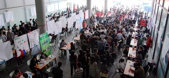 4月2日, 2011年东莞外商投资企业协会、香港工业总会校园招聘会在我校图书馆前举行。副校长李忠红到招聘现场了解用人单位和学生就业情况。