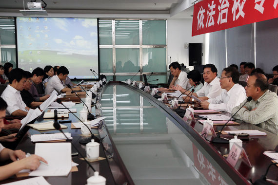 会上,杨晓西校长就如何加强依法治校问题谈了三点意见。一是全体教职工要正确对待近期学校发生的与依法治校原则相背离的事情,自觉维护和谐发展大局,各单位负责人要教育引导本单位教职工客观认清事件的本来面目,自觉维护学校声誉。二是在实现学校快速发展的进程中要深刻认识到依法治校是学校健康发展的根本保证,是新形势下的必然要求,也是维护和谐稳定的重要途径。三是通过进一步完善健全管理制度、提升制度执行力、加强师德师风建设等措施切实加强依法治校,进一步提高管理水平。