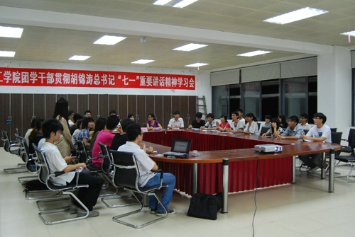7月4日,我校党政领导、学生干部带头学习胡锦涛总书记在庆祝中国共产党成立90周年大会上的重要讲话精神。