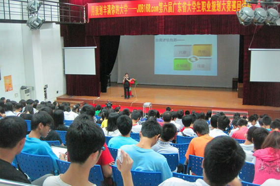 由广东省教育厅主办,广东省高等学校毕业生就业指导中心承办,广东工业大学协办的第六届广东省大学生职业规划大赛巡回讲座——用规划丰满你的大学生活,于5月16日晚在我校学生活动中心小剧场举行。各院(系)职业规划大赛初赛的选手们及师生代表、学生职业规划讲师团讲师等参加了讲座。