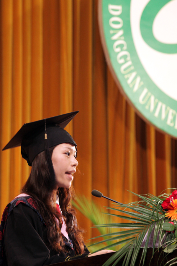 毕业生代表罗丹晓表达了对母校的依恋,对师长谆谆教诲的感激之情。