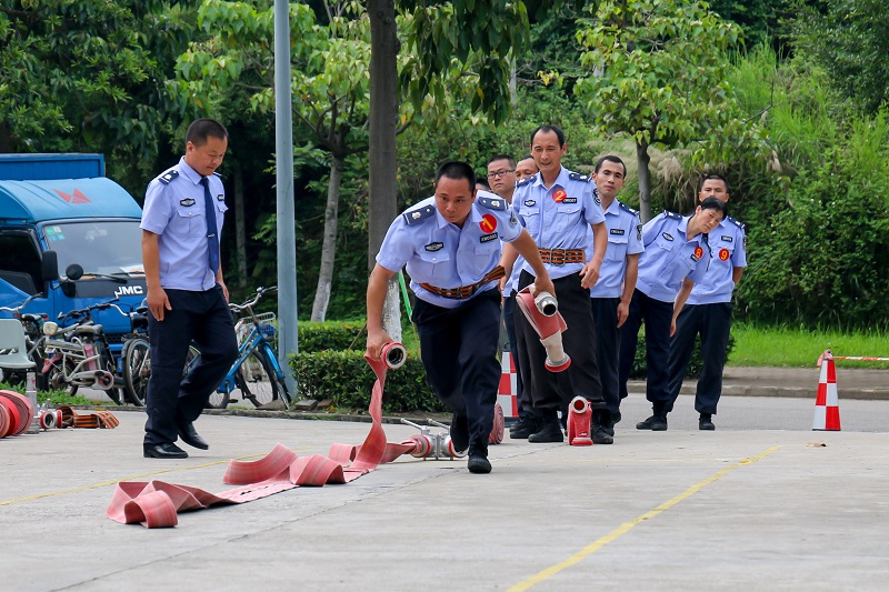 本次比赛设置了盾牌操竞赛、消防水带竞赛、消防拉梯救援竞赛等环节,旨在考察校卫队员的基本功与临场应急、救援能力。杨敏林对校卫队员的表现给予了充分肯定和高度赞扬。他表示,本次校卫风采大赛展示了校卫队员良好的精神风貌与团队协作能力,对提高校卫队综合素质、提升处置突发事件的应急与实战能力、加强校卫队伍建设,都具有积极的意义。