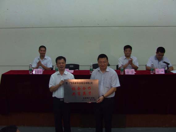 李忠红代表我校向易事特公司赠送了“校企合作  共育英才”的牌匾,感谢易事特公司对我校教育事业的大力支持。