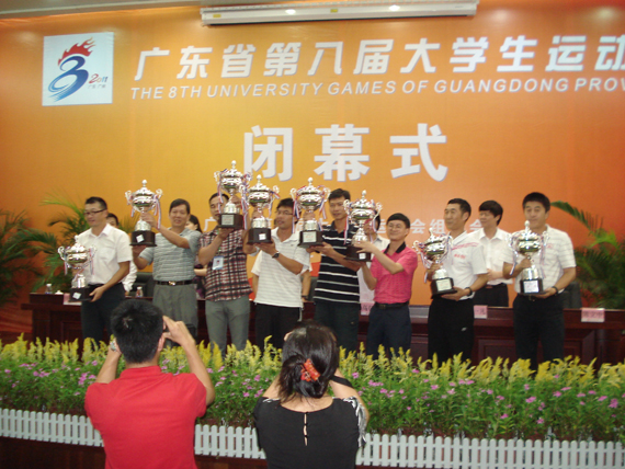 广东省第八届大学生运动会从8月22日拉开帷幕,经过15天激烈的龙争虎斗,于9月8日结束。在校领导的亲切关怀下,在校内各有关部门和院(系)的大力支持下,我校代表团全体运动员由各个项目的领队、教练率领,团结互助,奋勇拼搏,比出了风格,赛出了水平,几乎每个参赛项目都获得了前八名,最终获得乙组团体总分第六名的佳绩,排名仅在广州体育学院、华南理工大学、华南师范大学、暨南大学、广州中医药大学之后(前五名除广州体育学院外均为一本大学并被教育部批准可特招高水平运动员)。