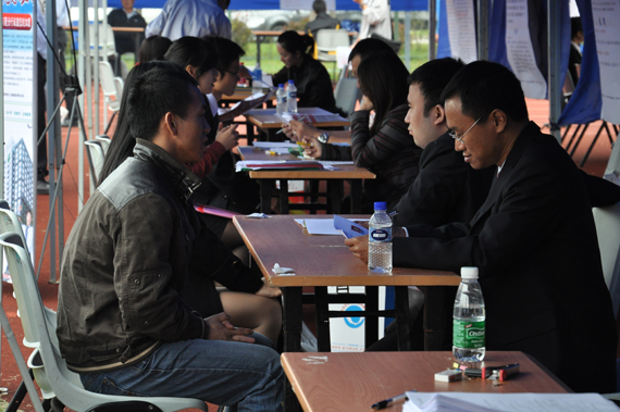 同时,记者采访到我校大四商务英语专业的李梅,在大三时她曾冒充大四的学生去应聘,当时想见识与感受一下招聘面试,汲取经验。她回想道,当时面试时感到很紧张,面试者问的许多问题都没能充分表达,也被有经验的面试者揭穿其不是大四的学生。由于有了上年的经验,今年应聘的她表示很淡定。她还表示,师弟师妹们如果有时间有想法的,可提前参与一下招聘会,这样对自己以后面试有益。