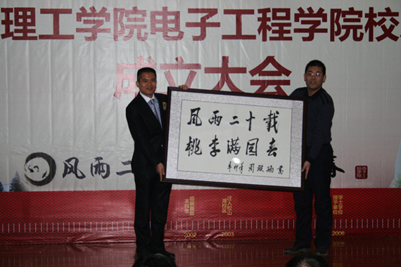 校党委书记周致纳,校长杨晓西对电子工程学院校友会的成立表达了关切之情。周致纳还专门题词“风雨二十载 桃李满园春”以示祝贺。