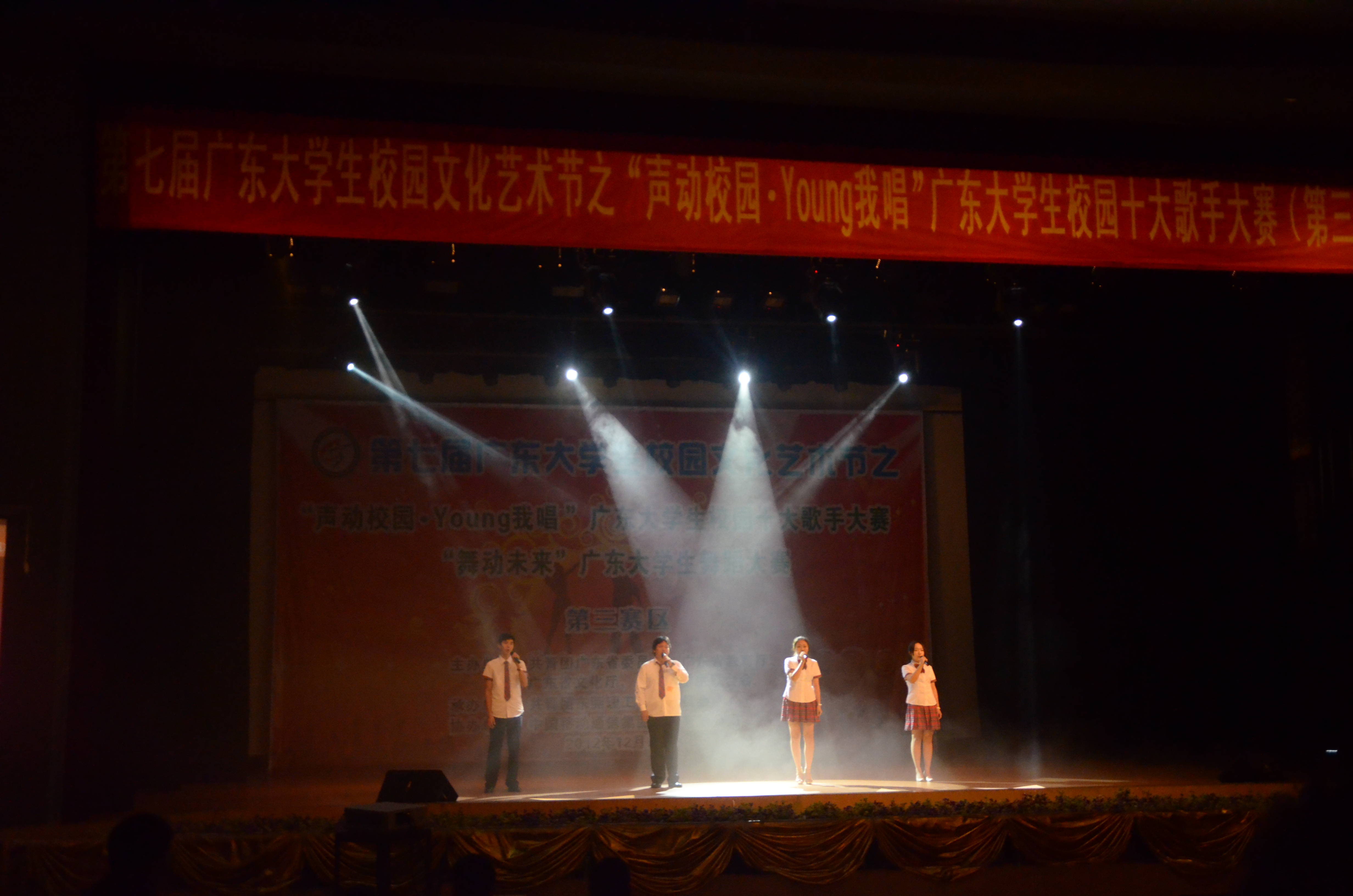 12月1日,由共青团广东省委员会、广东省教育厅、广东省文化厅、广东省学生联合会主办,我校团委承办的第七届广东大学生校园文化艺术节之“声动校园·Young我唱”广东大学生校园十大歌手大赛(第三赛区)在我校大礼堂举行。