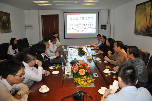 教务处、学生处、经济贸易系等部门负责人以及广东汇富进出口贸易有限公司方广华董事长出席了签约、挂牌仪式。
