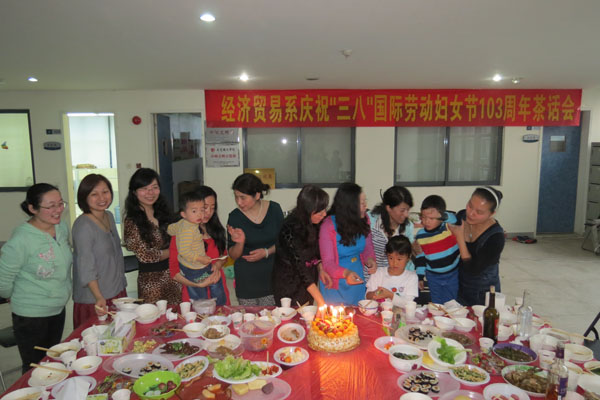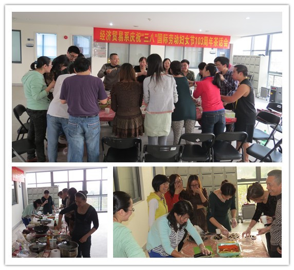 3月8日,经济贸易系在经管楼举行庆祝“三八”国际劳动妇女节103周年茶话会,全系女教工欢聚一堂,以学习烹饪、品鉴美食的特殊形式庆祝属于自己的节日。 活动中,经济贸易系的男教工们也热情地参与其中,各显身手,带来自制的美食与女教工们共同庆祝。活动现场热闹非凡,气氛活跃轻松,形式新颖独特,深受教工们的欢迎。大家纷纷表示,明年还要把这个节日办得更红火更欢乐。