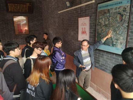 在参访过程中师生们获知,寮步镇横坑古村是东莞四大古村之一,四周有弧形水池环绕,格局保存良好。一河之隔的竹园古村是东莞法定历史文化街区的保护试点,也是此次参观考察的重点,设计师老艾给建筑学师生们讲解了从总体环境改造到景观节点设计、基础设施植入等活化全过程,展现出一种有别于当下盛行的“南社模式”(以旅游发展为主导)的可能性,将有限的资金更多地投放到民生所需之处,同时在细微处体现设计的魅力。