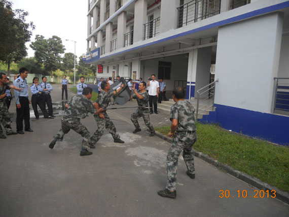 10月23日,根据《保卫处校卫队纪律作风建设月活动实施方案》安排,保卫处邀请东莞市公安局特警支队王延春警官来校开展突发应急事件处置技能培训,校卫队员、宿管员参加了培训。 王延春结合他的实战经验,根据我校实际情况,向大家传授了擒拿、抓捕、围捕等方面的格斗技巧和防身经验。