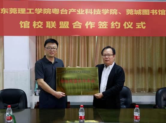 11月4日,由莞城校区图书馆牵头,粤台产业科技学院与莞城图书馆的“馆校合作联盟”签约仪式在莞城校区实验楼三楼会议室举行。
