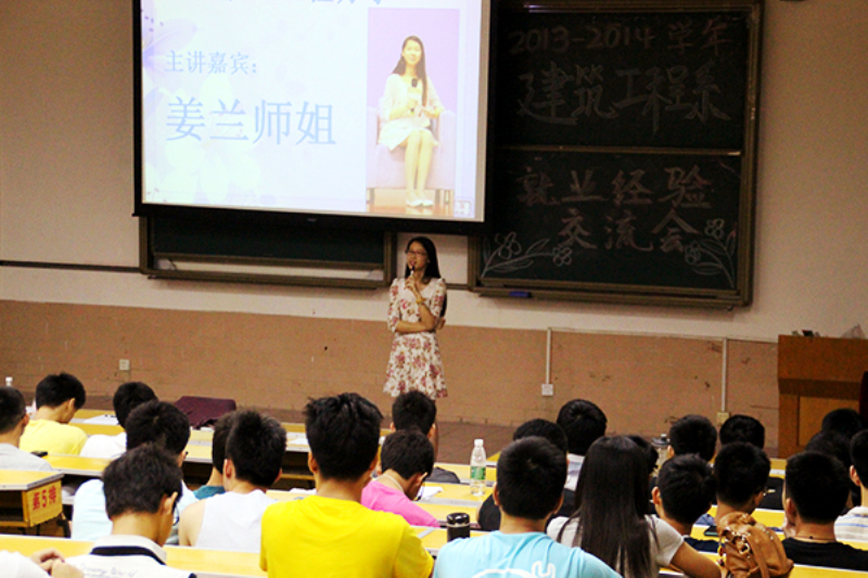 5月28日,建筑工程系在莞城校区召开就业经验交流会。2014届毕业生姜兰、目前就职于万科集团东莞分公司的姜兰向2013级的同学分享了自己的求职经历和经验。