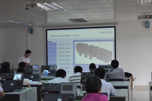 6月27日,电子工程学院在“西门子先进自动化技术联合示范实验中心”举办了“SIMATIC S7-200 PLC SMART”技术交流活动,来自14家企业的28名工程技术人员以及电子工程学院的部分教师参加交流活动。活动旨在配合市政府的“机器换人”工程,全面推进以“机器换人”来破解传统产业面临的资源要素制约的困境,助力企业减员增效,实现制造业转型升级。