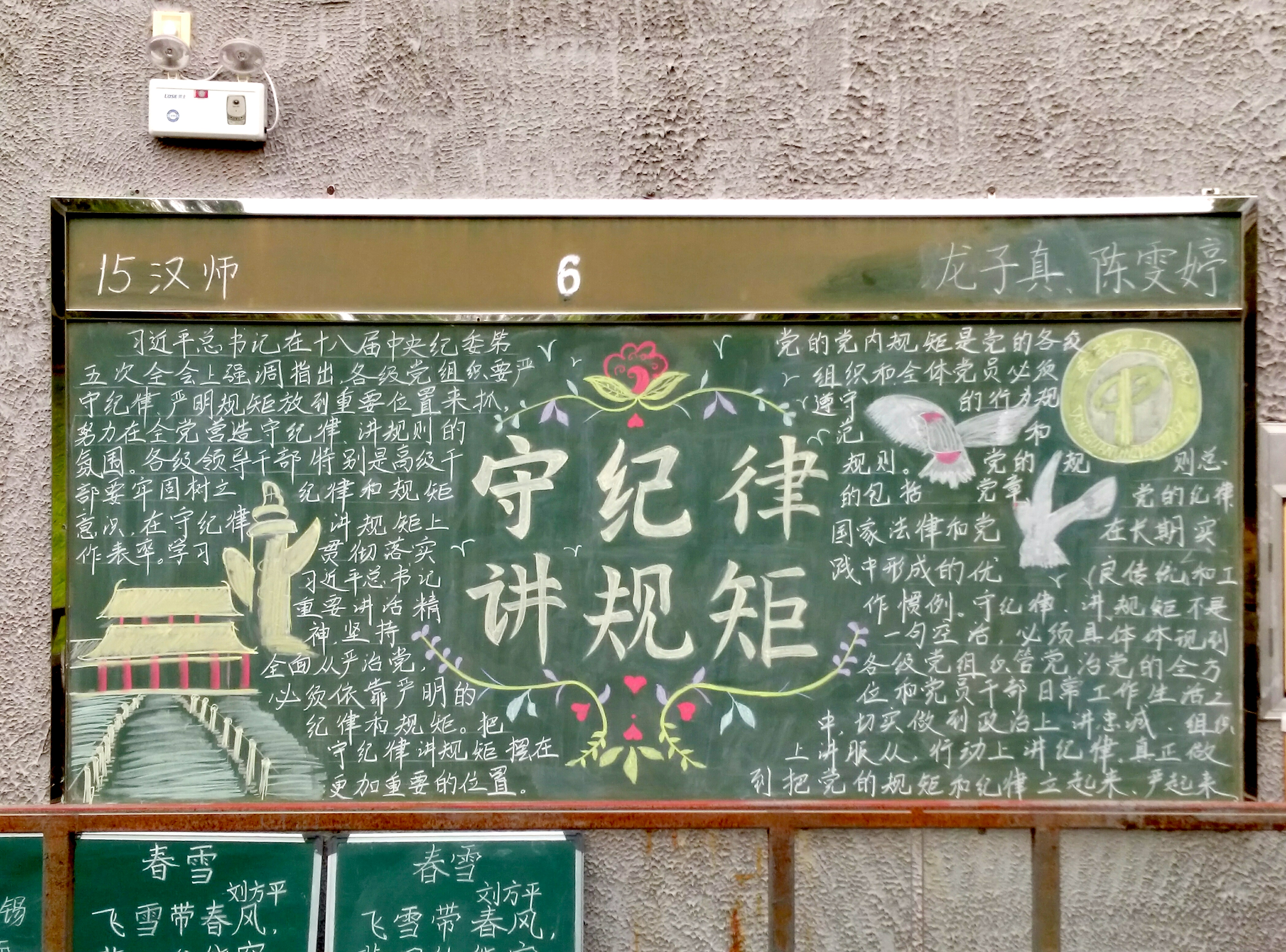 为了进一步组织好2016年纪律教育学习月的活动,教育学院(师范学院)结合专业特点,在9月中旬,举办了主题为“讲规矩,守纪律”的黑板报比赛。 全院学生党员及入党积极分子参加了比赛。同学们积极响应,共收到了24幅板报作品,经过老师的评定,选出6幅作品作为优秀板报作品进行了表彰。