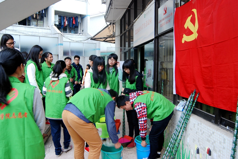 整个下午,学生党员和志愿者冒着小雨,不怕脏,不怕累,在莞思园宿舍楼外的花坛、过道以及1-5栋宿舍内楼道等卫生死角进行清扫。志愿者们还通过走访宿舍等形式向社区的其他学生宣传“雷锋精神”以及参与社会工作的意义。