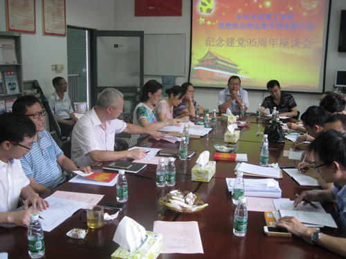 6月29日上,思想政治理论教学部召开庆祝建党95周年座谈会,全体教职工参加会议。