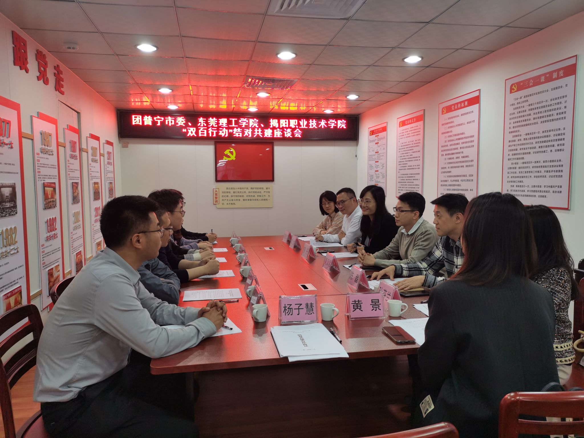 3月19日-3月20日,校团委书记劳丹率“绿美莞工青年突击队”前往揭阳普宁市,与普宁市、揭阳职业技术学院就“双百行动的建设需求、资源共享、发展规划等初步达成了结对共建合作协议。