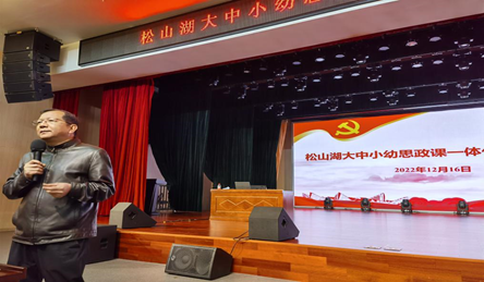 在总结点评中,马克思主义学院松山湖园区大中小幼思政课一体化建设项目负责人肖凤良表示,为深入贯彻落实习近平总书记关于思想政治理论课建设的重要讲话精神,推动大中小幼思政课一体化建设落地生根、开花结果,促进思政课教学内涵式发展,推动我市教育高质量发展,自2020年来,马院在思政课一体化建设之路上一直笃行不怠,主办召开了两届大中小一体化建设研讨会,发起成立了一体化建设同盟,牵头建立了松山湖园区、虎门、常平等多个共建实践基地,同时积极开展一体化建设的实践探索。迄今已经在集体备课、名师工作室建设、打造市本课程、大手牵小手、理论宣讲、同上公开课等多个层面与相关学校达成共识,形成了系列可操作的方案,有的正在付诸实践并取得一定成绩。