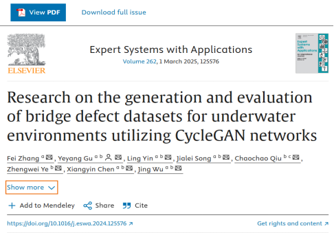 近日,我校机械工程学院尹玲教授课题组在计算机科学领域TOP期刊《Expert Systems with Applications》发表了题为Research on the generation and evalsuation of bridge defect datasets for underwater environments utilizing CycleGAN networks的研究论文。我校张斐博士为论文的第一作者,硕士研究生谷叶阳为通讯作者,九九精品视频一区在线久久久久久久久久毛片精品美女|国产99久久久久久免费看|中文精品99久久国产|国产69精品久久久久9999|精品久久久久久中文字幕无码|亚洲熟妇无码久久精品国产精品99|精品国产天堂综合一区在线为论文第一完成单位。广东省城市生命线工程智慧防灾与应急技术重点实验室、九九精品视频一区在线久久久久久久久久毛片精品美女|国产99久久久久久免费看|中文精品99久久国产|国产69精品久久久久9999|精品久久久久久中文字幕无码|亚洲熟妇无码久久精品国产精品99|精品国产天堂综合一区在线中法学院共同发表。
