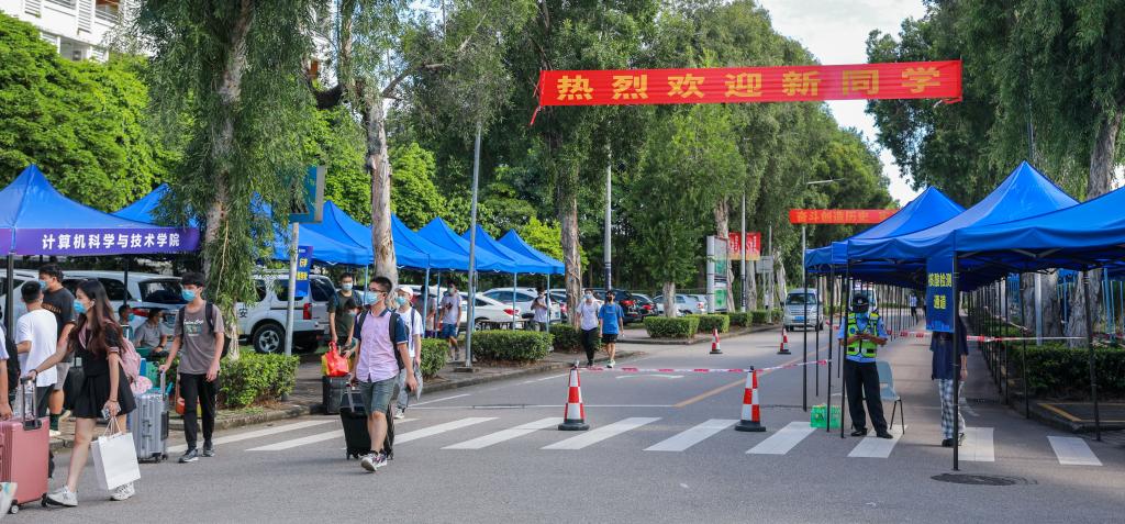 8月26至29日,莞工迎来了2021年秋季学期学生返校。根据疫情防控要求,学校在返校现场设置了体温检测、扫码登记及核酸检测,安保人员、后勤人员、志愿者等指导车辆分流,引导新生入校。据悉,学生需连续14天完成“疫情防控打卡”,进行入学报到前的每日健康监控;到达学校后,学生全程佩戴口罩,凭莞工二维码、粤康码和行程卡,接受测量体温后入校,按照路面标识和志愿者指引前往核酸检测点完成核酸检测后,方可回到宿舍入住。学...