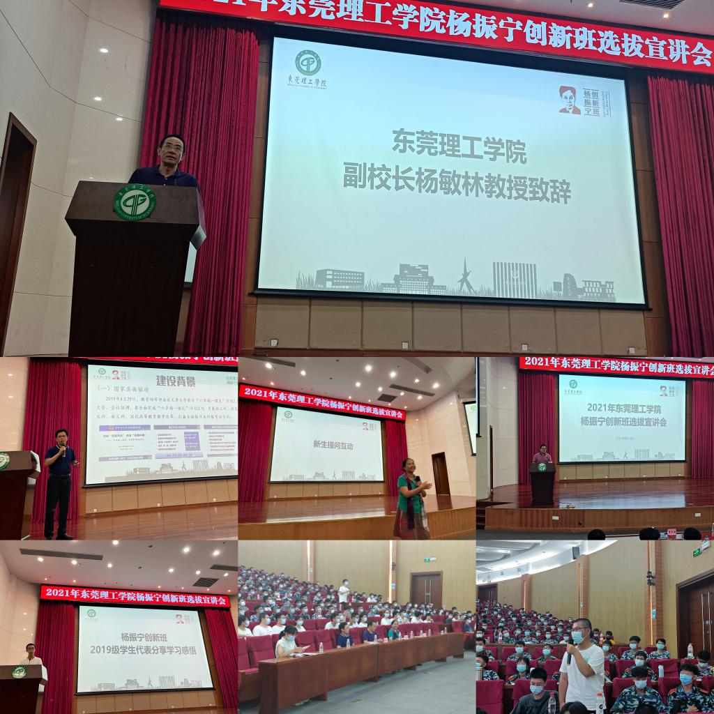 9月16日,我校2021级杨振宁创新班(以下简称为杨班)新生选拔宣讲会于松山湖校区会议中心报告厅举行。校党委委员、副校长杨敏林,教务处、知行学院负责人,杨班辅导员及通过初轮资格审核的457名2021级新生参加宣讲会。宣讲会上,杨敏林指出,杨振宁创新班采取更个性化、多元化和弹性化的教学模式。在杨班,同学们可以自由地选择导师,一对一交流学习;拥有极大的学习自主权,可以根据发展方向选择专业;享受优质的教师资源,学...